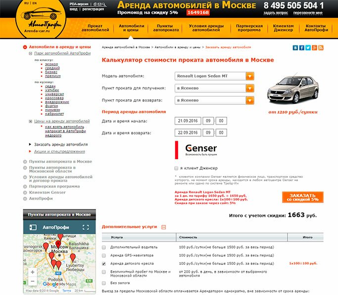 В АрендаАвто-ббн предлагается прокат автомобиля недорого.«Рено Логан» на сутки обошелся нам в 1 520 рублей (без учета скидки для клиента Genser), а это очень дешево для авто напрокат в Барабинске.